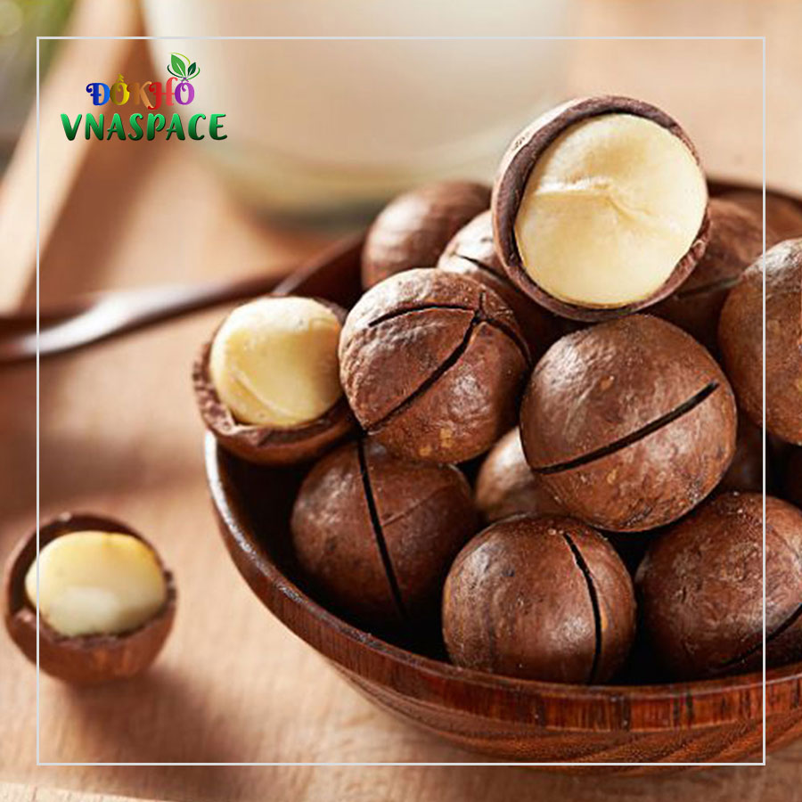 – Macca đã nứt sẵn, rất dễ tách vỏ. Mắc ca nhân đã tách vỏ và làm sạch.